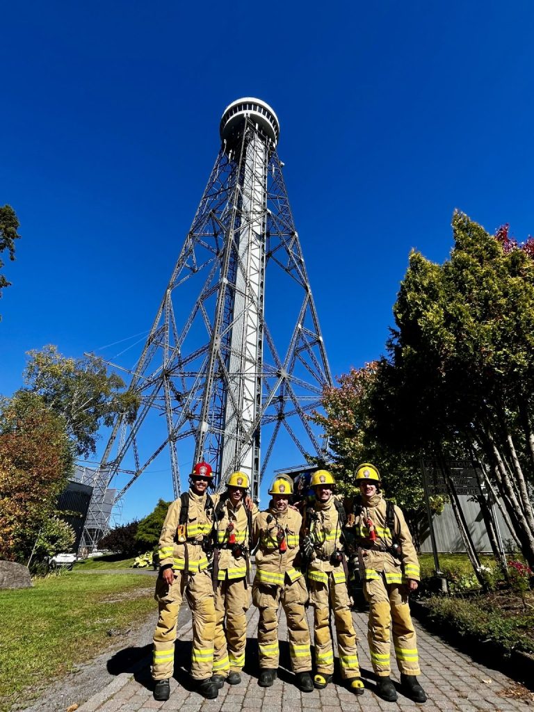 L’escouade composée de Guillaume Bérubé, Maxime Ouellet, Luka Savard, Oussama Refas et Nicolas Denis Desrosiers avait la colossale tâche de grimper au sommet de la tour à deux reprises, pour un total de 1 190 marches.