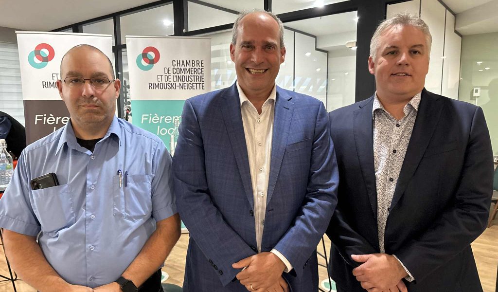 Les trois candidats à la mairie de Rimouski, Guy Caron, Sébastien Bolduc et Sébastien Cyr, croisent le fer lors du débat électoral organisé par la Chambre de commerce et de l’industrie Rimouski-Neigette (CCIRN), en collaboration avec Le Soir et FLO 96,5.