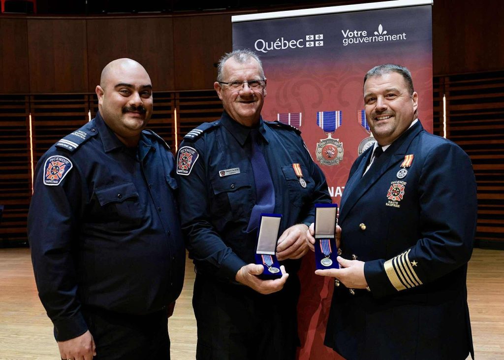 Le gouvernement a également honoré Steve Dumont, aujourd’hui directeur, mais lieutenant au moment des faits, ainsi que le capitaine Clément Daraîche, du service de sécurité incendie de la Ville de Sainte-Anne-des-Monts. Leur exploit remonte au 20 septembre 2010, lors du sauvetage de trois victimes d’un naufrage au large de Cap-Chat.