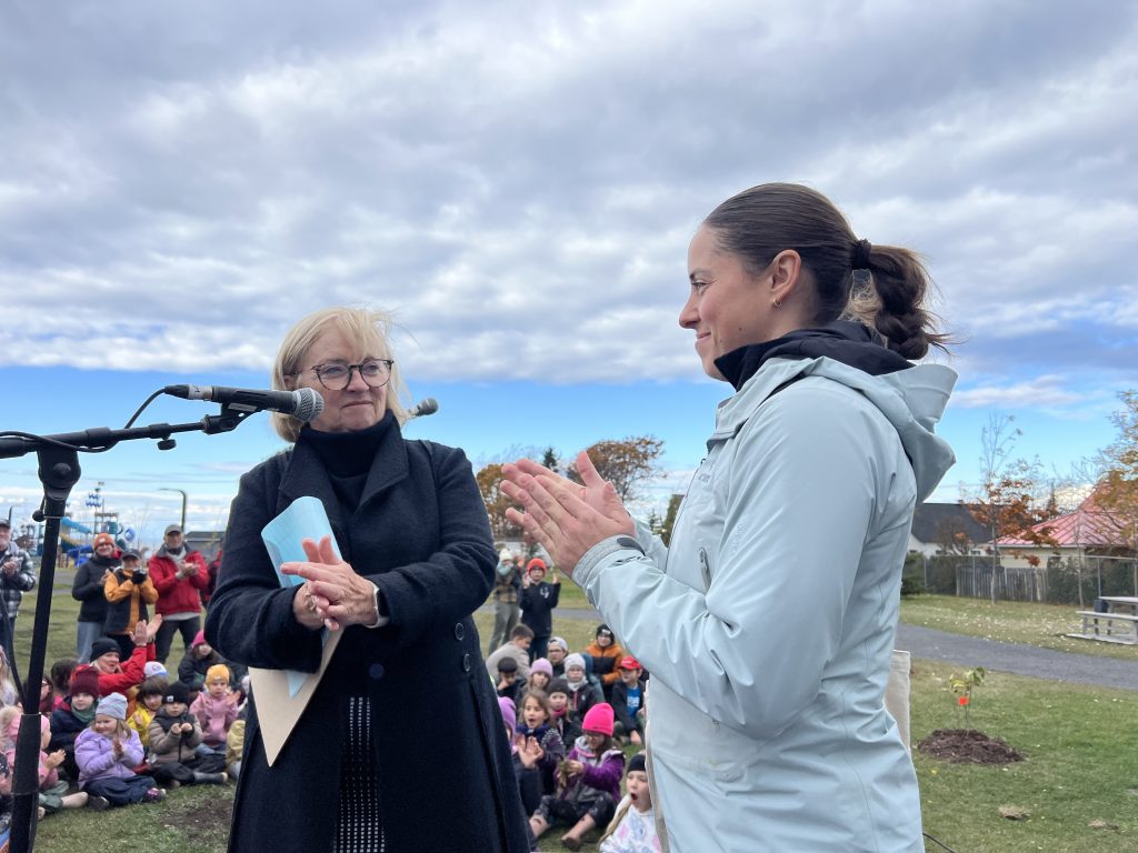 Sainte-Luce a inauguré, jeudi, le parc Maude-Charron en présence de l’athlète olympique et des élèves de l’école primaire des Bois-et-Marées. La fébrilité était au rendez-vous.