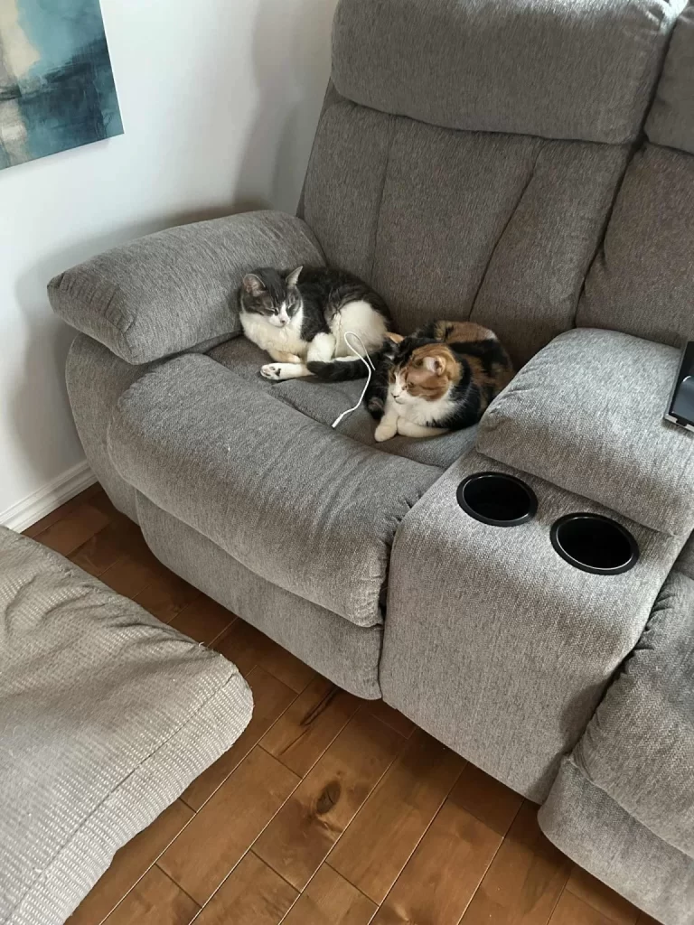 Mais Katie et sa fille n’étaient pas les seules à se réjouir. L’autre chat de la famille attendait aussi le retour de Karla qui a toujours été une grande sœur pour lui. « À son retour, ils se sont immédiatement retrouvés et ils ont fait le party », ajoute-t-elle en riant.