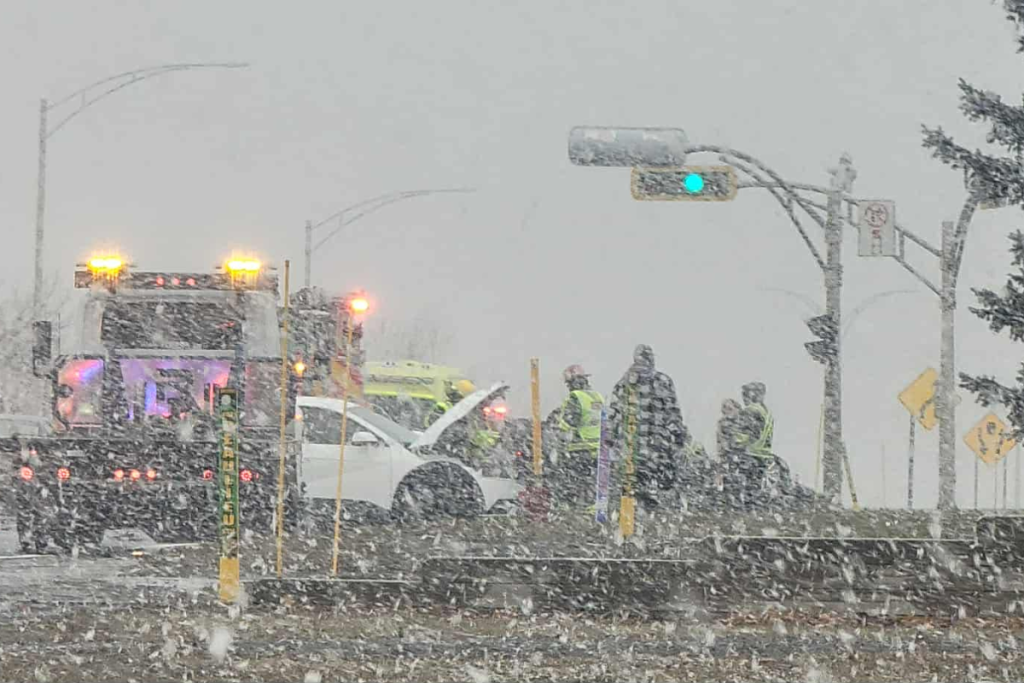 Selon un témoin sur place, un blizzard a rendu les conditions routières difficiles en fin d’avant-midi.