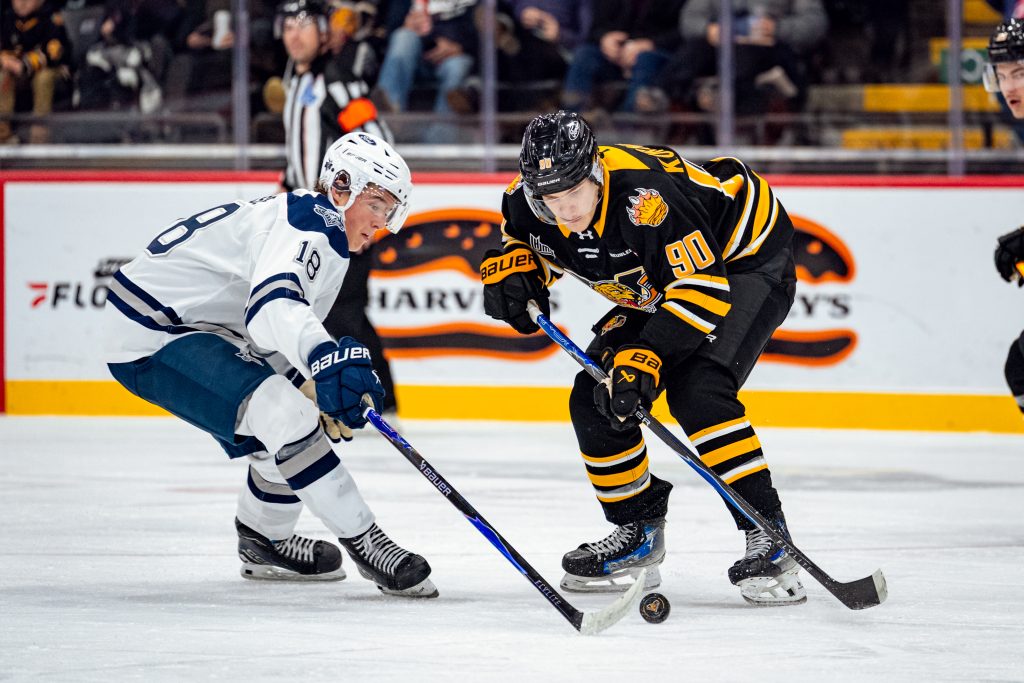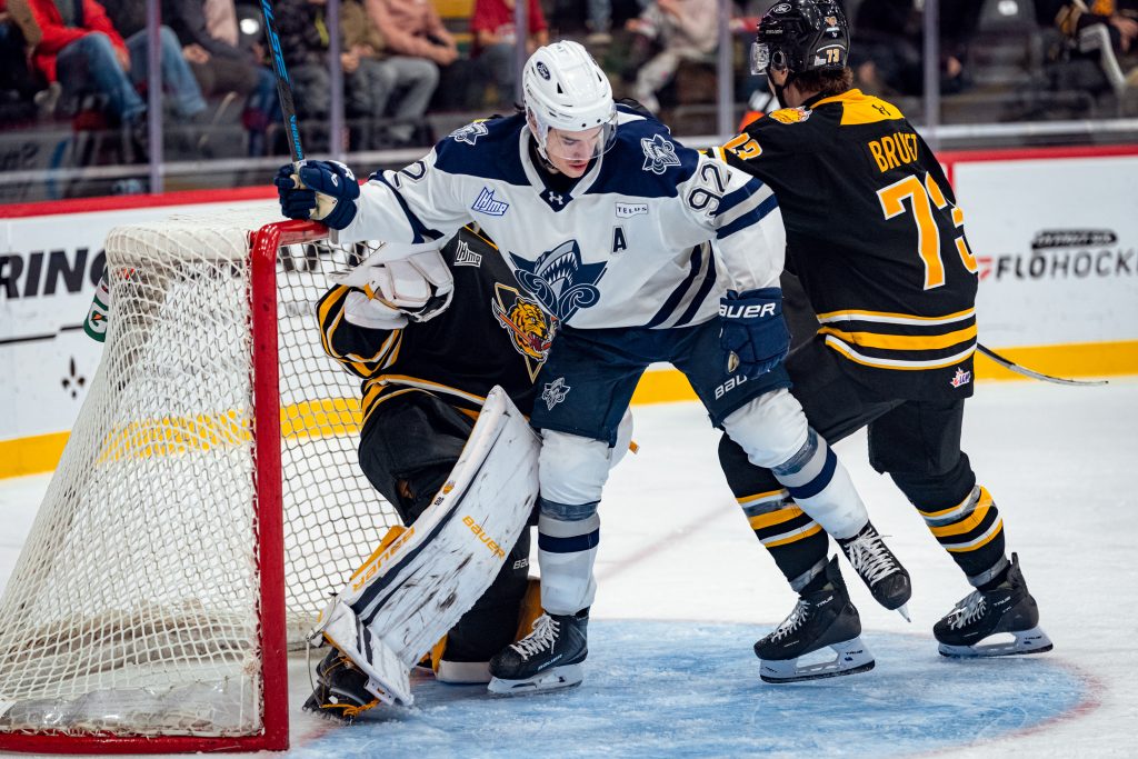 Quelques secondes après la fin d’un jeu de puissance, Dovydas Jukna a doublé l’avance des visiteurs au milieu de la troisième. Puis, avec le gardien retiré lors d’un jeu de puissance avec plus de quatre minutes à jouer, Alexis Bourque a fait dévier un lancer pour ramener les Tigres à un but. Mais, Lou Lévesque a profité de vitesse pour ensuite marquer dans un filet désert.