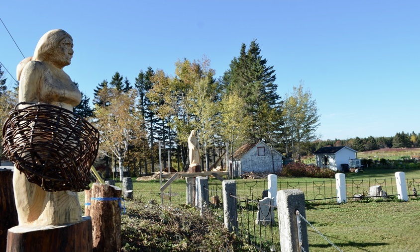 Le projet intègre une dimension artistique. Pierre D’Amours, un sculpteur de Matapédia, a taillé dans les troncs d’arbres restants une Acadienne au visage ridé qui « regarde les siens dans le cimetière ».