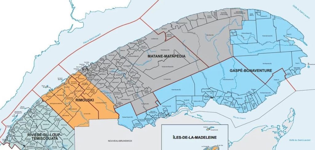 La nouvelle carte électorale regroupera les comtés de Gaspé et Bonaventure, alors que celui de Matane-Matapédia s’agrandirait pour comprendre 51 municipalités. L’ouest de la MRC de La Mitis, comprenant les municipalités de Sainte-Luce, Saint-Donat, Saint-Gabriel-de-Rimouski et Saint-Charles-Garnier, s’ajoutera à la circonscription de Rimouski.