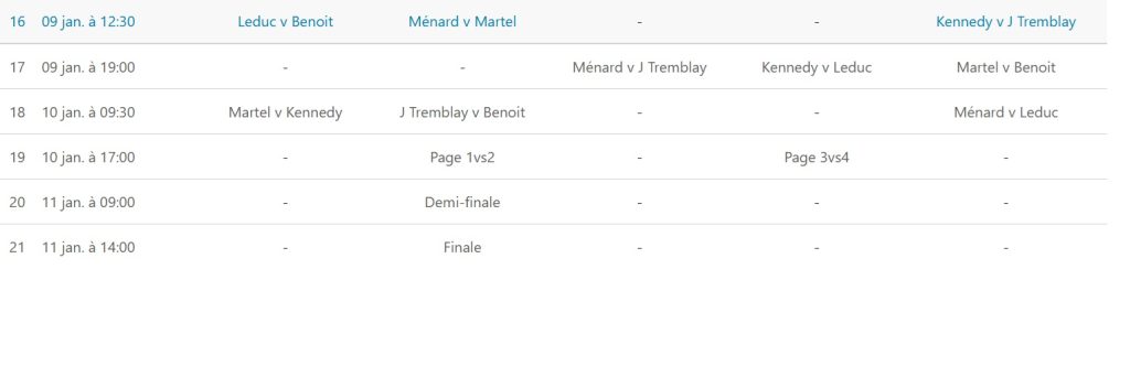 Plus tôt dans la journée de jeudi, le Bas-Saint-Laurent l’avait emporté sur la formation de Mathieu Tremblay en gagnant 9-8, avant de subir une défaite de 10-5 contre celle de Yannick Martel, en soirée.