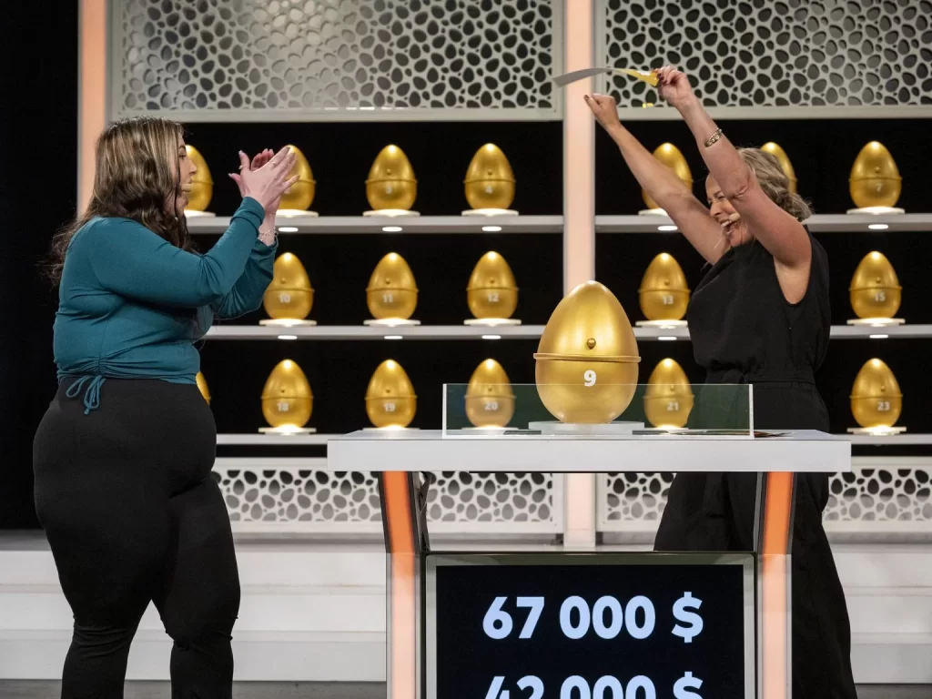 Madame Synette a finalement opté pour l’œuf qui contenait 50 000 $. Cette somme s’ajoutait aux 17 000 $ gagnés lors des jeux précédents.