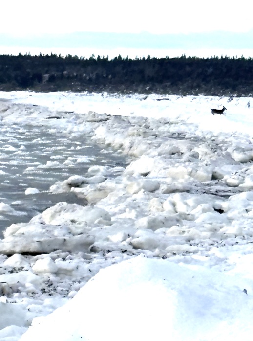 Il est impressionnant de voir des cerfs se faufiler entre de gros blocs de glace pour aller s’alimenter de varech et d’algues marines en bord de mer. (Photo courtoisie Guillaume Ouellet)
