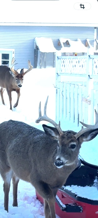 Des cerfs mâles matures bien panachés circulent librement dans le village de Port-Menier. (Photo courtoisie Guillaume Ouellet)