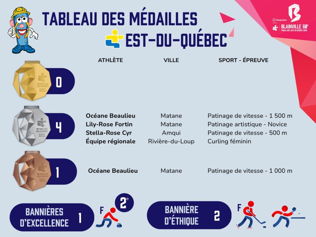 L’Est-du-Québec s’est aussi distingué par son esprit sportif. Les équipes féminines de hockey et de tennis de table ont chacune remporté une bannière d’éthique en loisir et en sport.