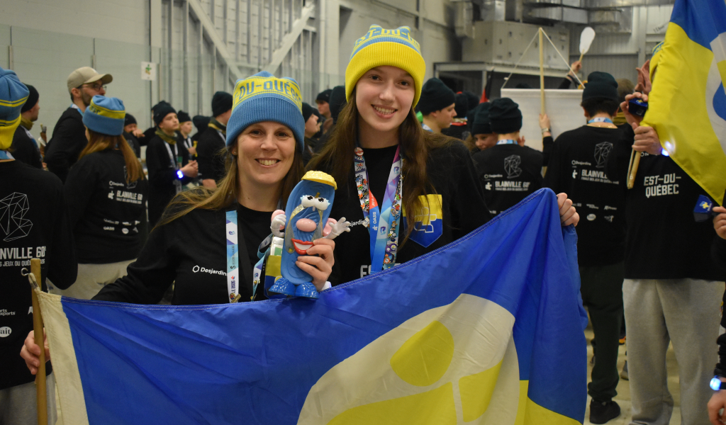 La cheffe de délégation de l’Est-du-Québec, Christine Gardner et la porte-drapeau de la région pour la cérémonie de clôture, Delphine Bélanger. (Photo courtoisie)
