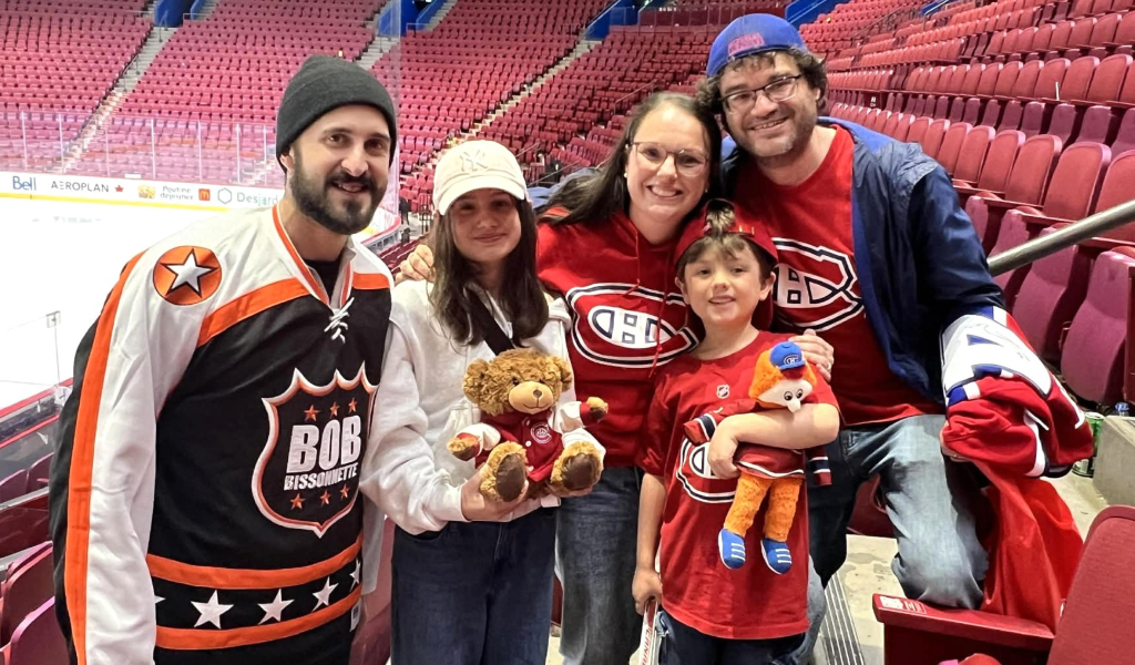 Philippe Danault, à gauche, en compagnie de Serge Dionne, sa conjointe, notre collègue au Soir, Annie Levasseur et leurs enfants, Èva et Édouard. (Photo courtoisie)