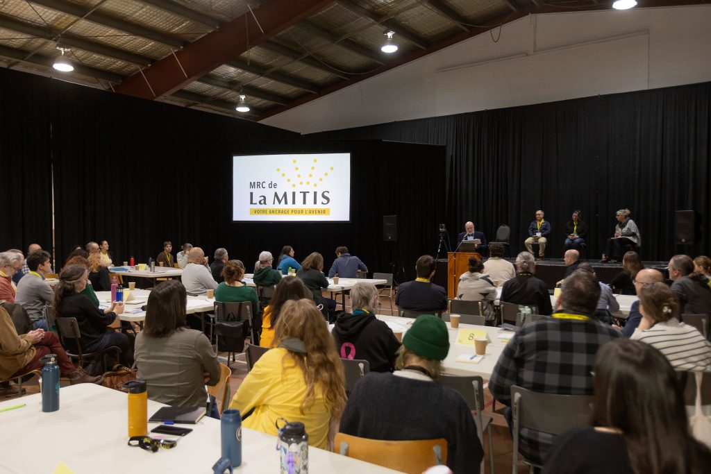 Des acteurs du milieu participent au Sommet sur l’adaptation et l’atténuation aux changements climatiques, tenu le 3 février 2026 dans La Mitis, une étape ayant contribué à alimenter la démarche du Plan climat. (Photo courtoisie MRC de La Mitis/Incontournable productions)