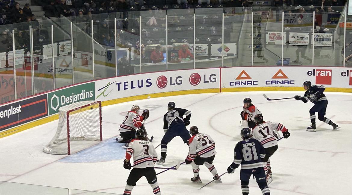Spencer Gill lance et compte face à Riley Mercer (Photo Journal Le Soir – Olivier Therriault)