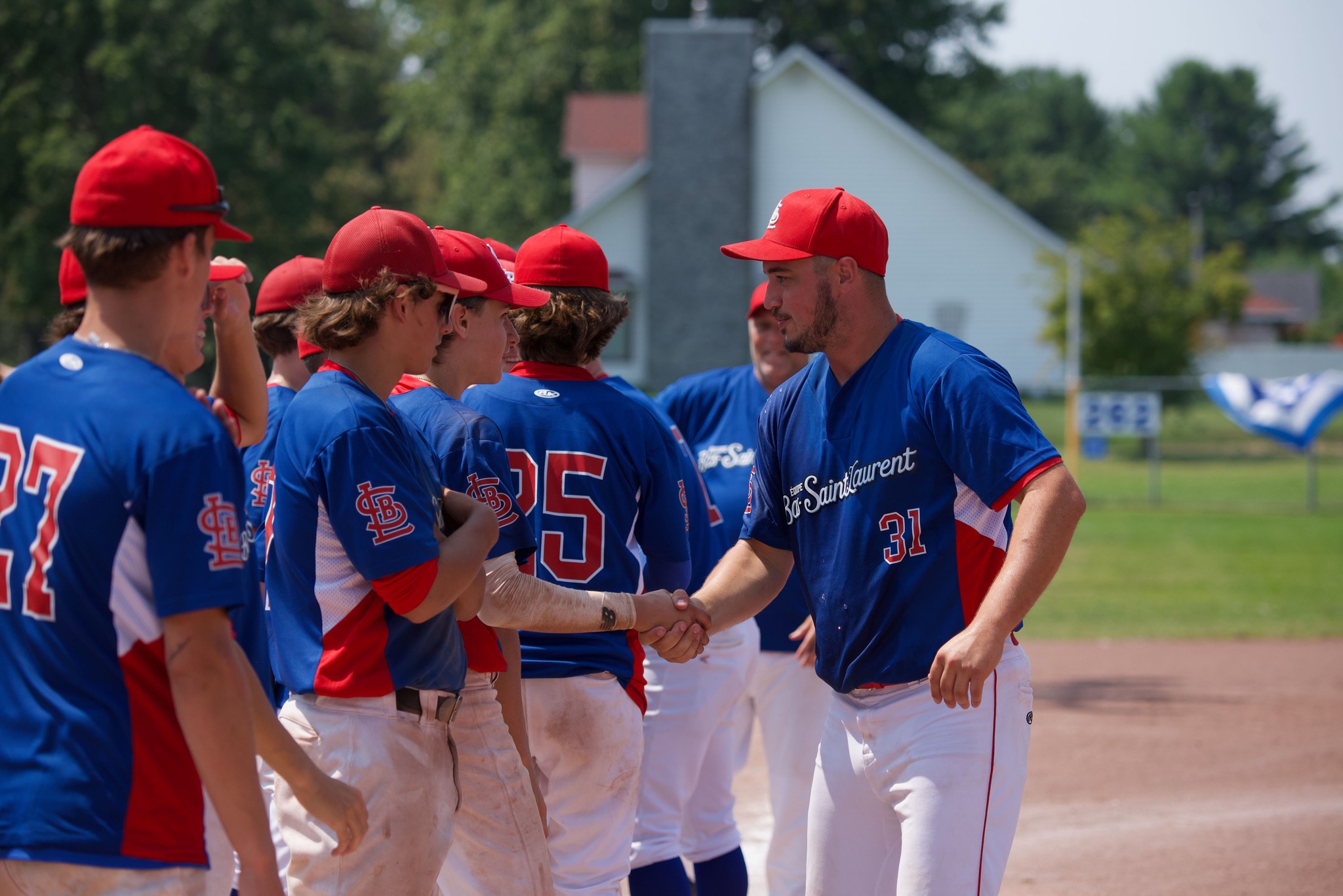Le gérant, Kevin Roy, félicite ses joueurs. (Photo : gracieuseté)
