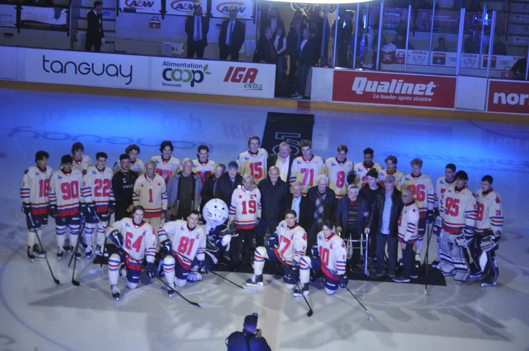Les joueurs de l’Océanic avec les anciens des Feuilles d’Érable (Photo Journal Le Soir – Alexandre D’Astous)